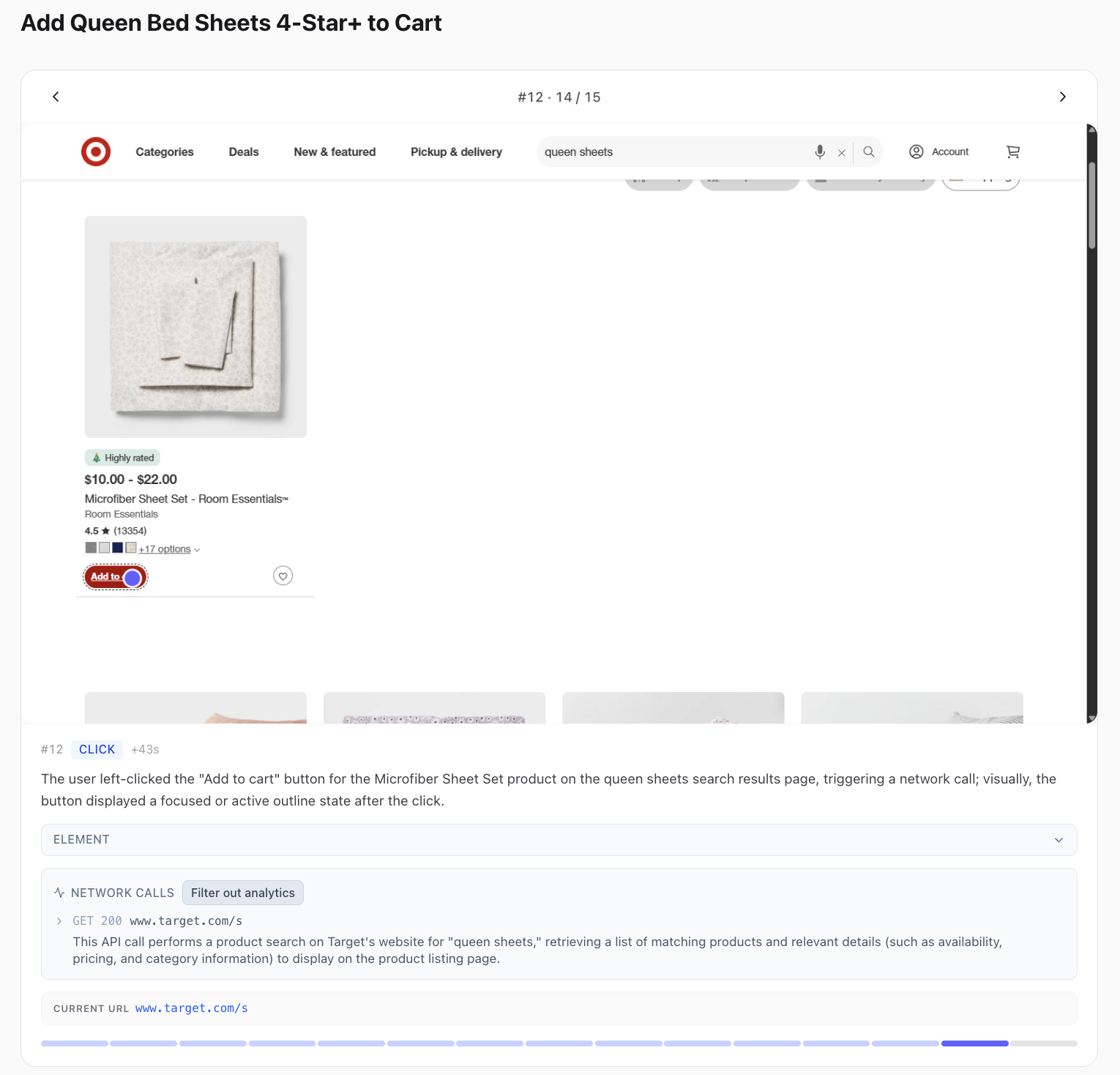 Slesh generates structured web tasks and collects human demonstrations across real websites at scale. Each trajectory is end-to-end and verified.
